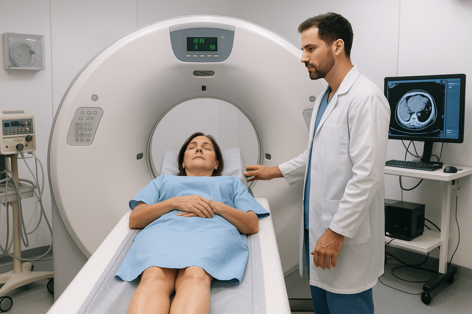 CT is een afkorting van Computer-Tomografie en wordt ook wel CT-scan genoemd. Met behulp van röntgenstraling worden afbeeldingen gemaakt van dunne dwarsdoorsneden van het lichaam. Deze doorsneden geven precies weer hoe de vorm, structuur en ligging van de inwendige organen en weefsels in het onderzochte gebied eruit zien. Hierdoor geven de beelden meestal meer informatie dan “gewone” röntgenfoto’s.